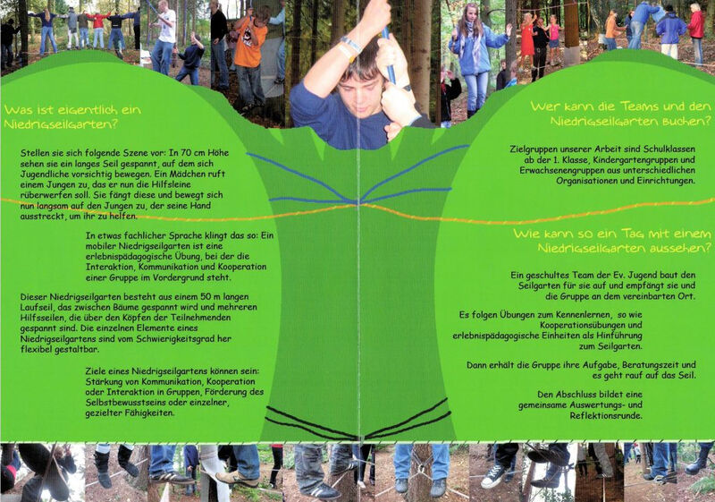 Die Jugendlichen lernen im Niederigseilgarten, mit Herausforderungen umzugehen und ihr eigenes Körpergefühl weiterzuentwickeln. Gleichzeitig geht es um Teamwork, um das gemeinsame Bewältigen von Aufgaben. Die Niedrigseilgarten: ein Beispiel kirchlicher Erlebnispädagogik.